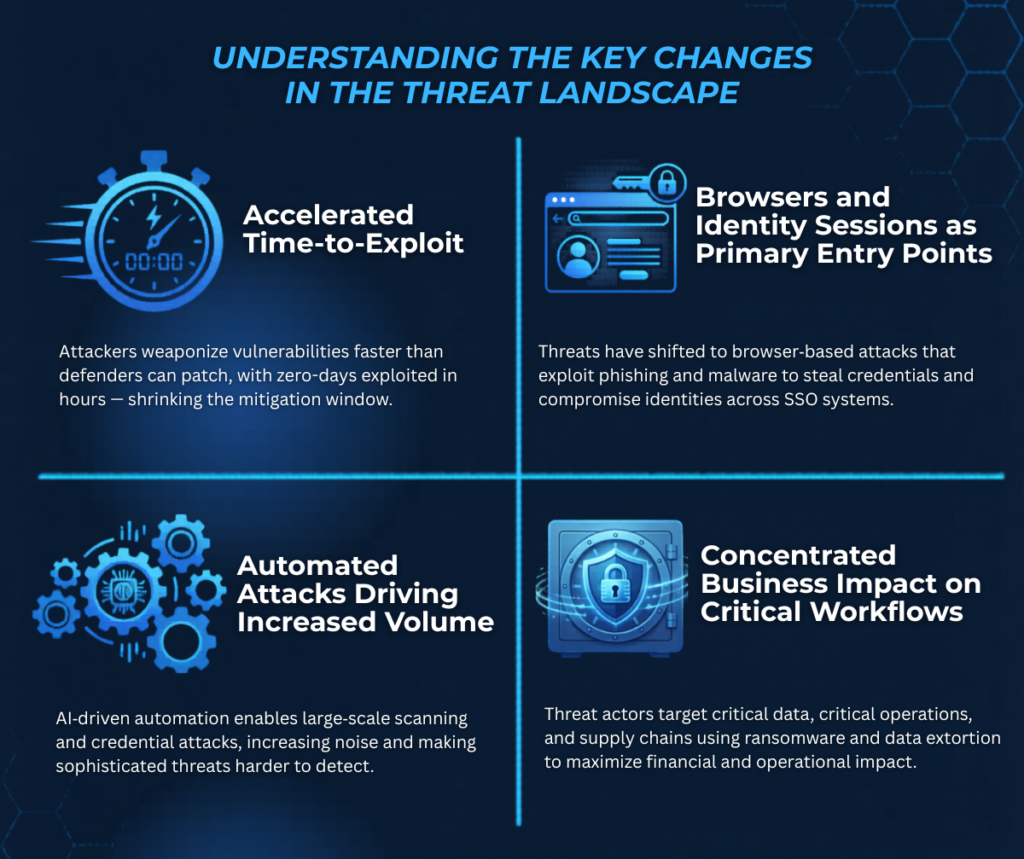 Browsers and identity sessions have become adversaries’ primary gateways into systems. By compromising client-side environments and stealing authentication tokens, adversaries can bypass many existing perimeter-security investments, shifting attacks away from traditional network defenses.