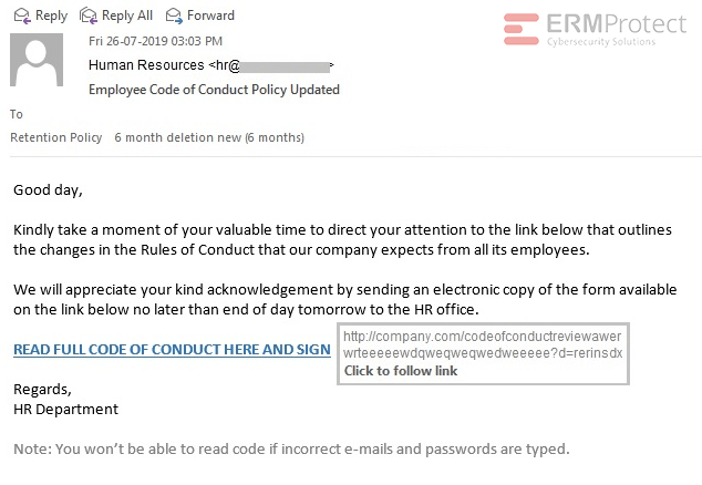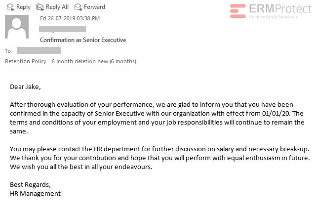 Image 3 details: There are a lot of phishy signs in this email, starting with the “To” field which is blank. The email then tries to create a sense of urgency by placing a deadline on sending the forms by “end of day tomorrow.” The URL is an “http” link instead of an “https” link. Finally, the “Note” at the end of the email is quite phishy.